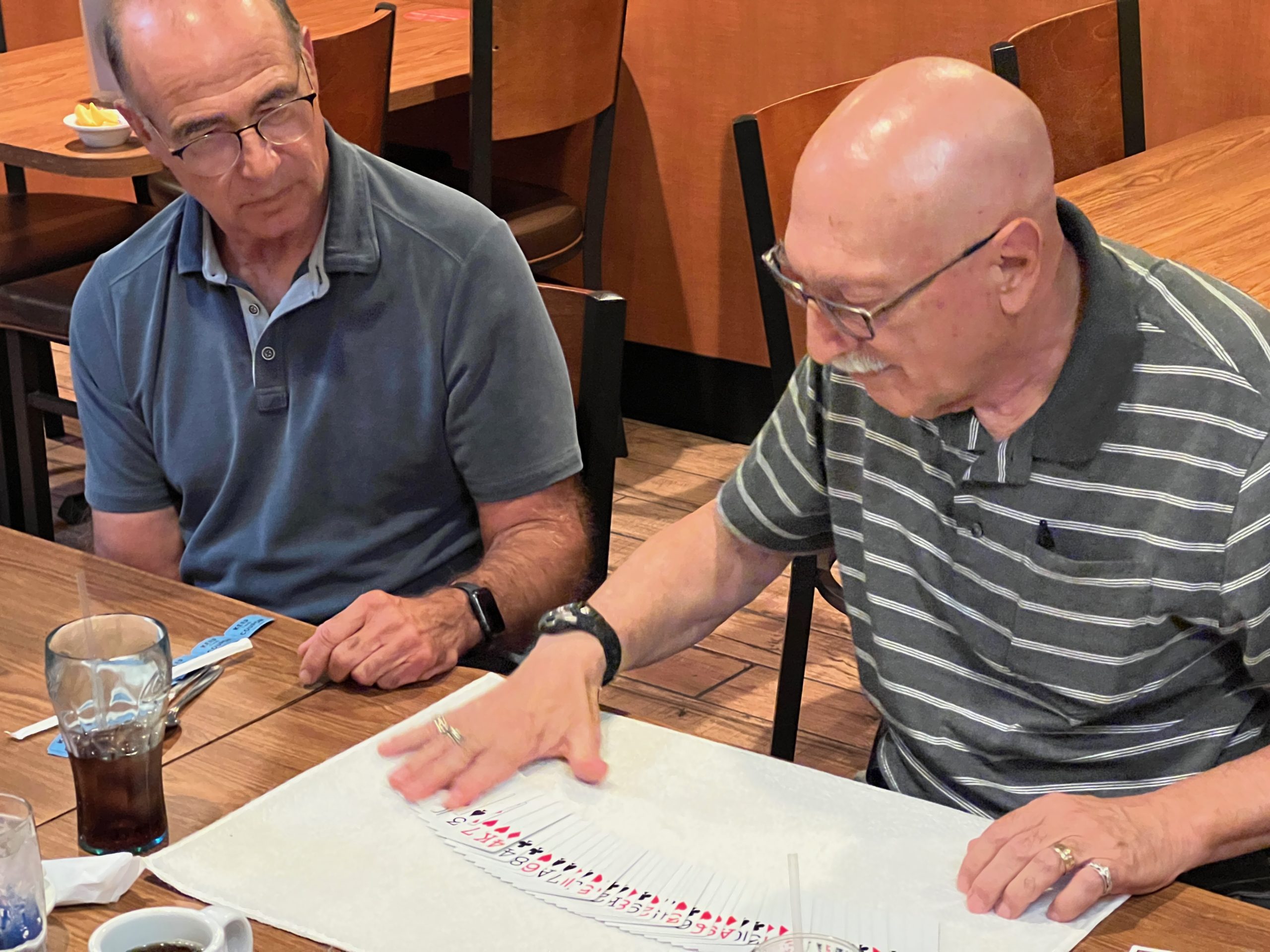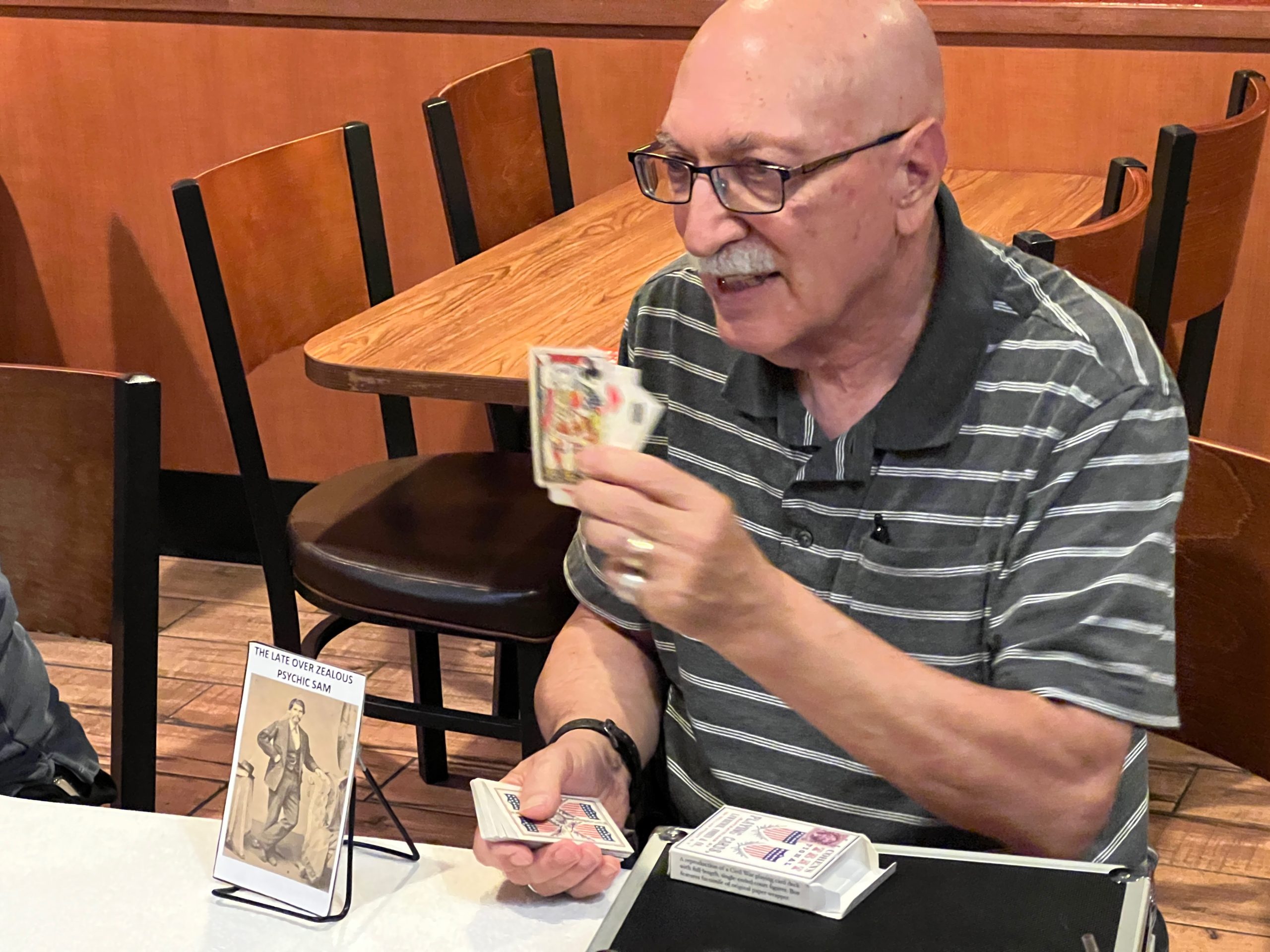 Club Treasurer Doug Northway performed Vega’s Invisible Soul, and then Envylope 2.0 where a signed card ends up inside an envelope as the deck vanishes. The performance turned into a fun mini-brainstorm session on ways to make the “magic moment” look even better.