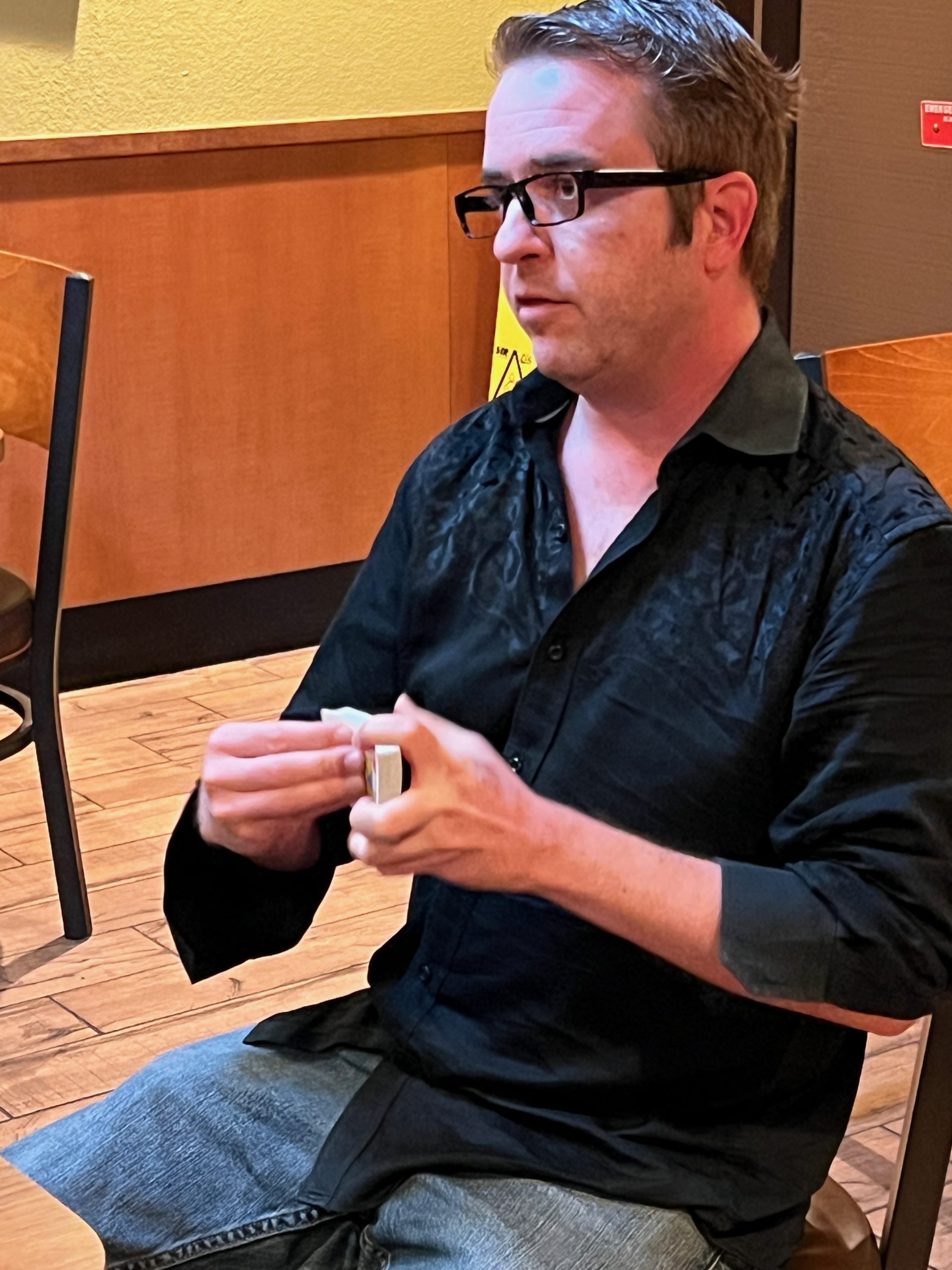 Tank Hanna, our Vice President, showed a variation of Marlo’s Cutting the Aces and also talked about a series of shows he’ll be doing soon in a small theatre in Scottsdale. (More magic in town is always a good thing!)