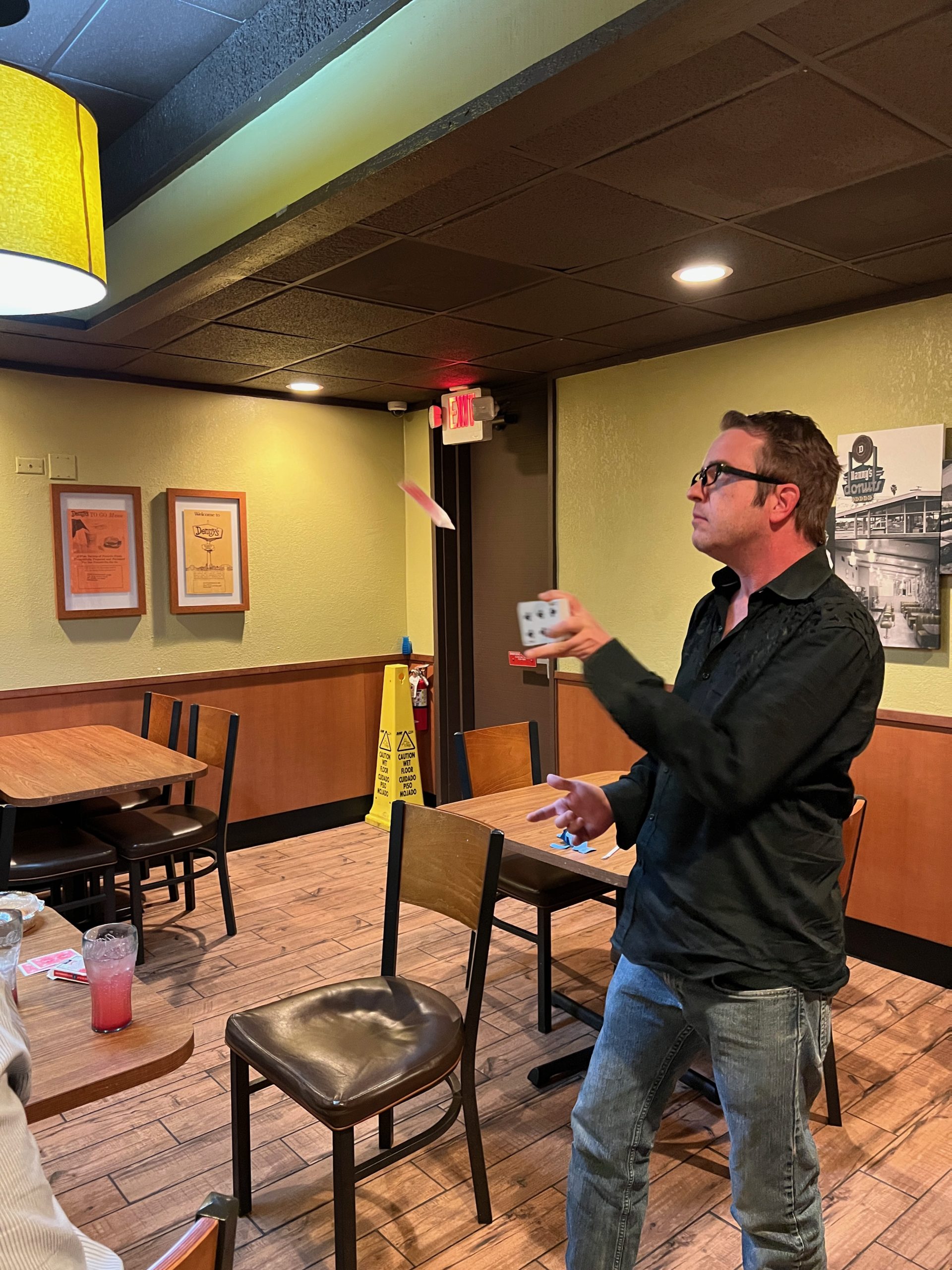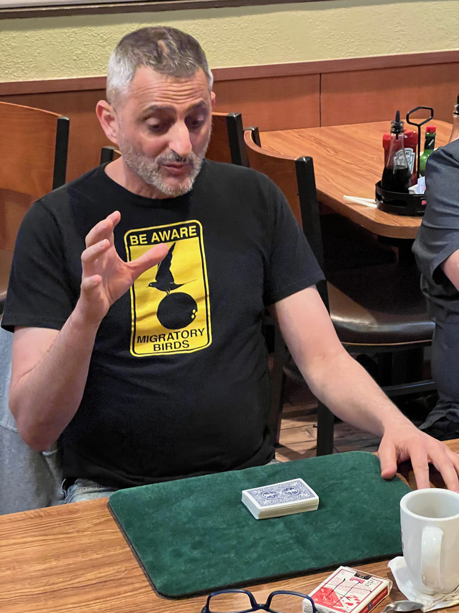 Chris Rose performed a variation of Chicago Opener, and then gave us a quick tutorial on how to toss a card on the floor without it flipping over. Yes, it’s an uncommon move, but now we know what to do if we ever need to!