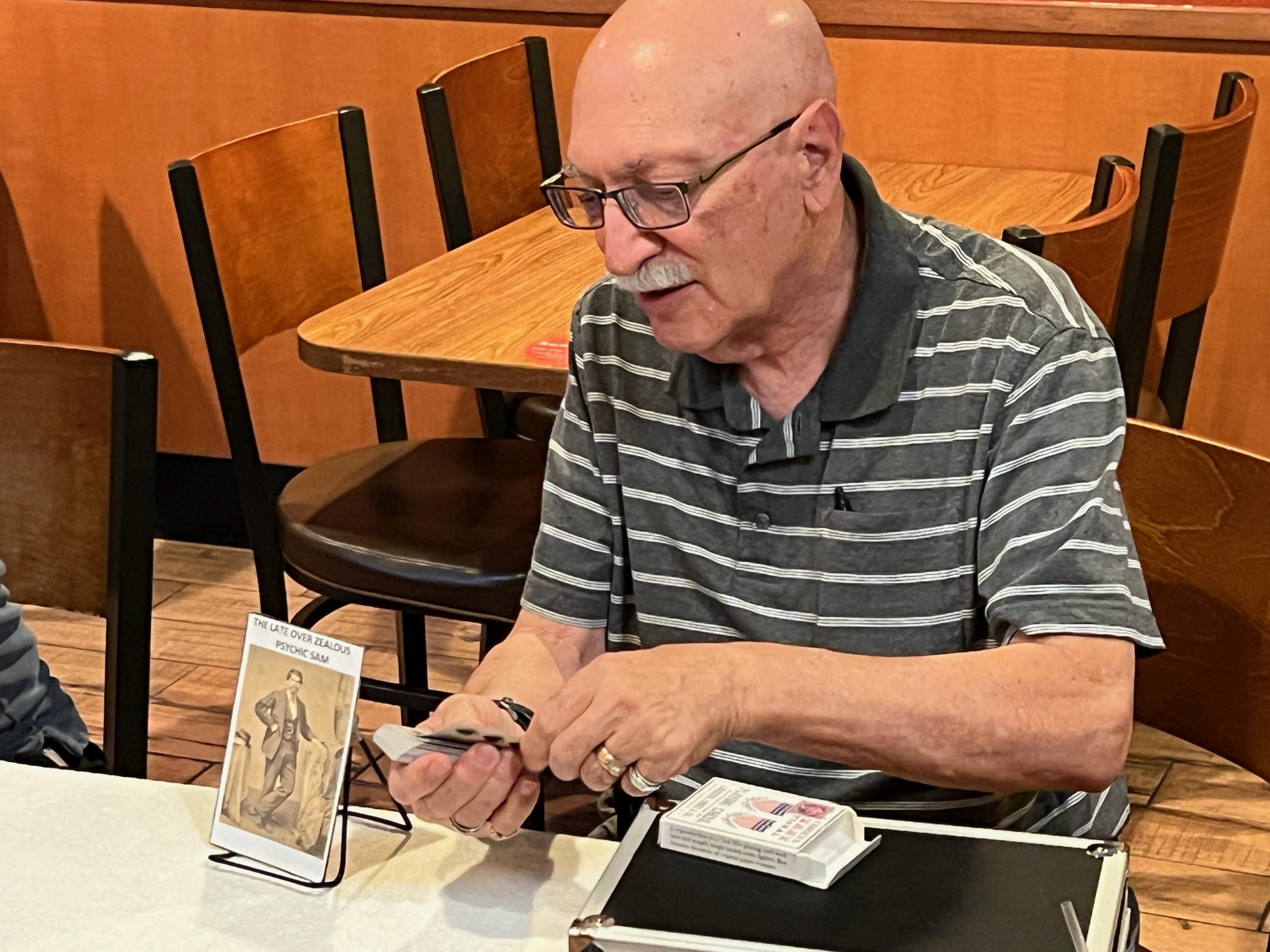 Bruce Kundin performed a few feats of mentalism, including Richard Osterlind’s Hands Off, and an effect about the Late Over Zealous Psychic Sam (an effect I can find ZERO about online, but I have a picture of Bruce performing it, so I know I didn’t dream it).