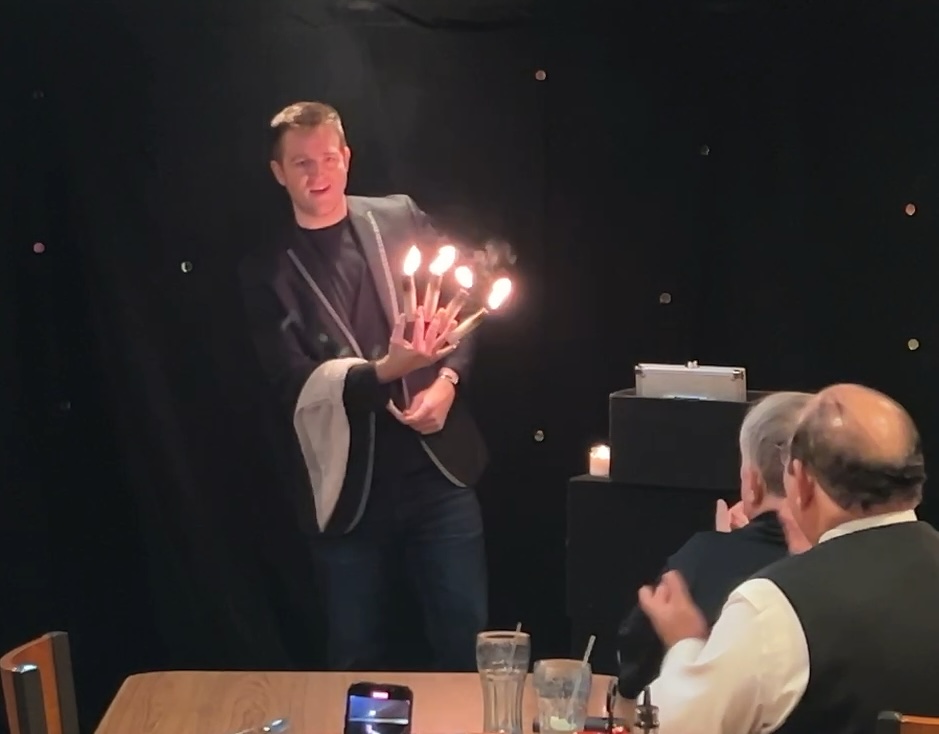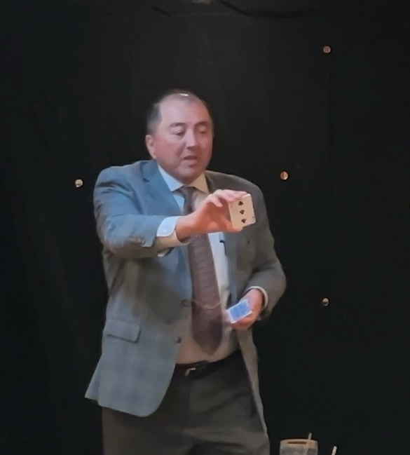 Local pro Eric Giliam amazed (and amused) the room with his act. It started with the manipulation of playing cards, and then candles, and balls. All done to music with a few comments from Eric as he performed. He brought someone out of the audience and did a fun Miser’s Dream and then ended his set with a torn & restored newspaper.