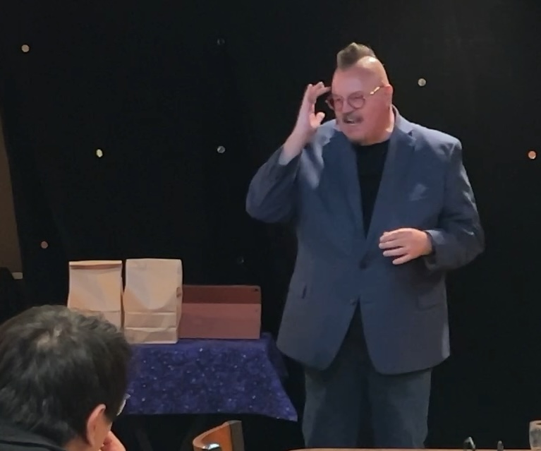 The show ended, the stage was struck, and we all wandered out to the parking lot for the typical meeting after the meeting. We are blessed to have so many professional magicians (in performance, if not profession) in our club, without a big ego in sight.