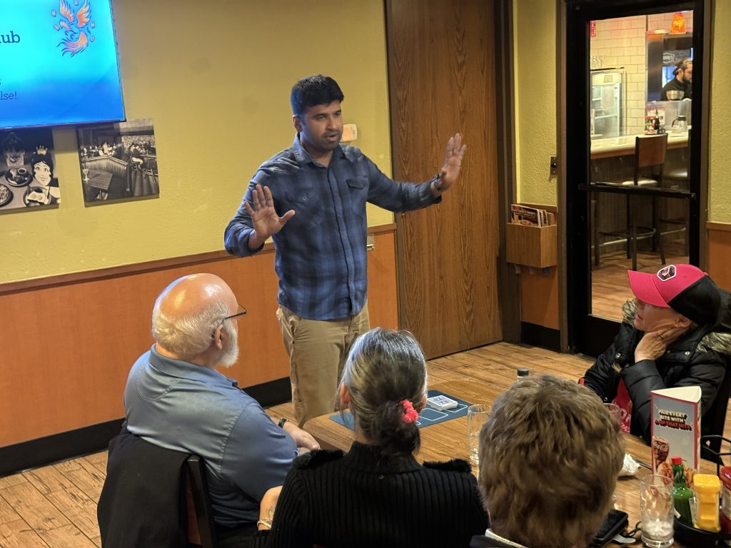 Anvesh Yalamanchili presented a four-ace routine framed around a story of someone who claimed to do impossible things with a deck of cards—and then proved it. Simple, confident, and effective.